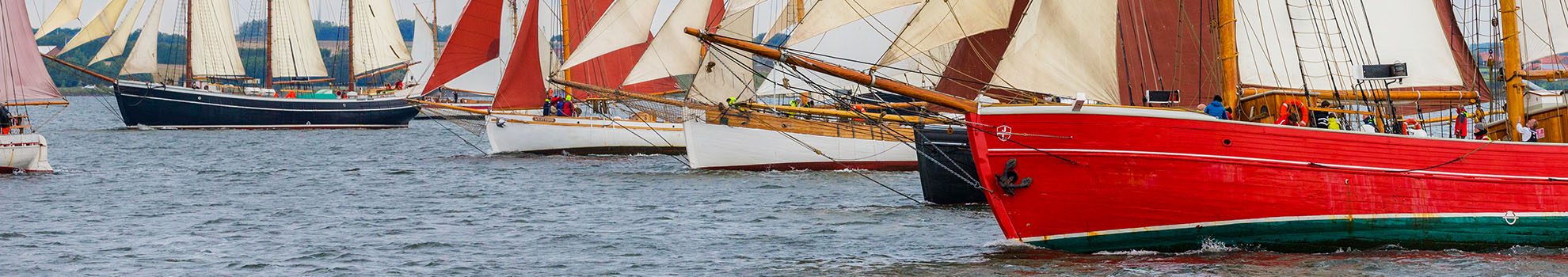 Kom på havnen og oplev når de små og store træskibe kommer til byen, efter dagens kapsejlads på fjorden.
