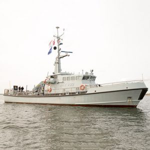 MåltagningsbådElephanten: Grå/blå kutter. Fører hvidt flag med rødt HANCOCK logo, samt Moland flag.